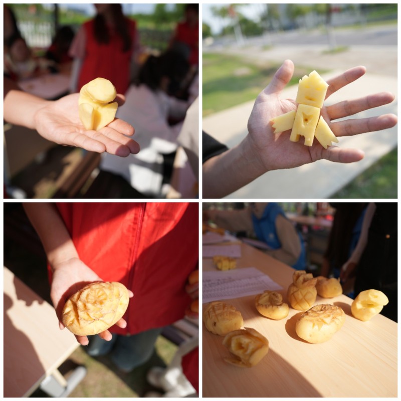 “这不是简单的劳动课,而是一场跨学科的美育实践。” 来自经管学院晨曦义工站的一名学生感慨道:“劳动教育不是机械重复,当土豆变成艺术品,大家才真正懂得‘万物皆可创造’的真谛。”