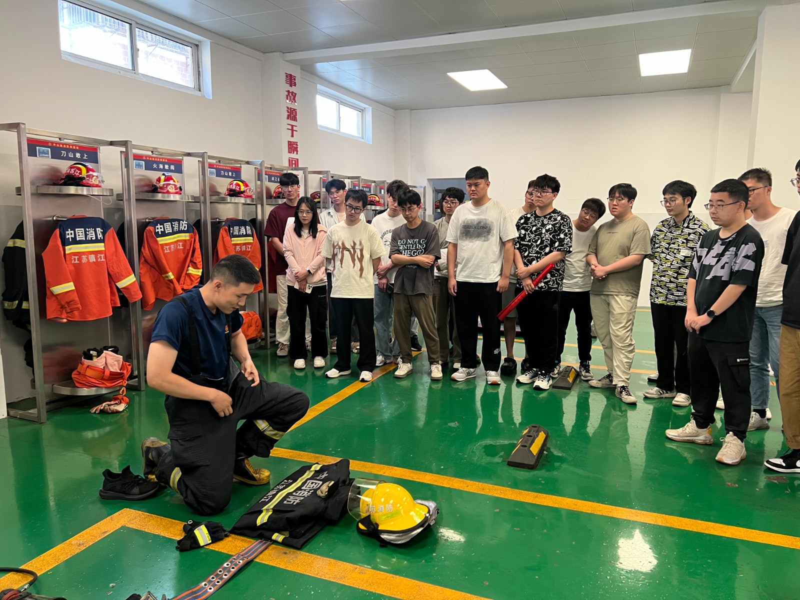 消防指战员带领研究生们深入装备库,重型防化服、液压破拆工具组、热成像仪等专业设备引发阵阵惊叹。“这套避火服重达60斤,可抵御1000℃高温!”消防员演示时,船海学院研一学生王经鑫主动请缨试穿,仅2分钟便汗流浃背:“消防员负重逆行的艰辛,只有亲身体验才懂!”