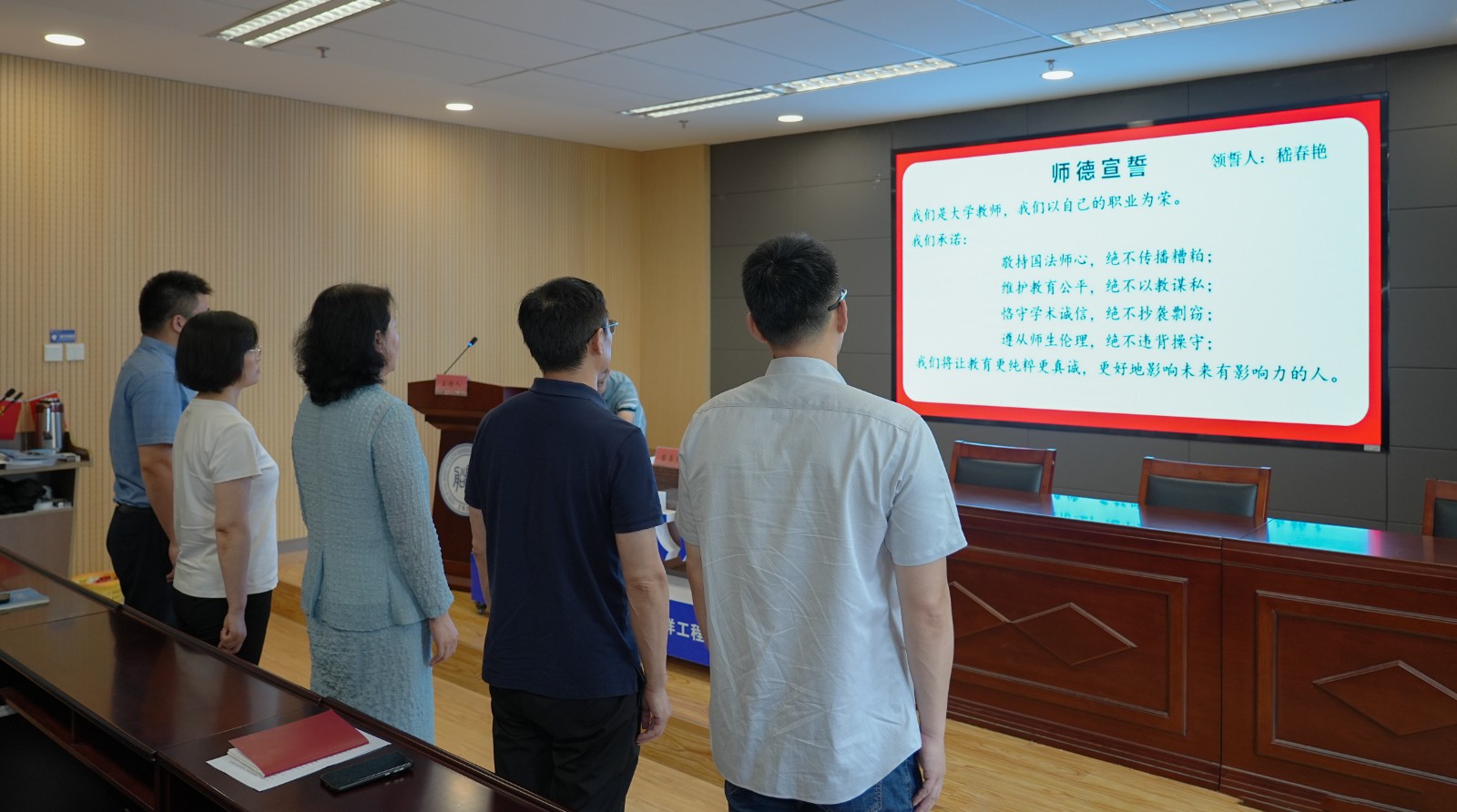 活动中,嵇春艳带领船海学院全体教师庄严宣读师德承诺,铿锵有力的誓言回荡在会场,全体教师再次坚定了恪守师德规范、潜心教书育人的决心。