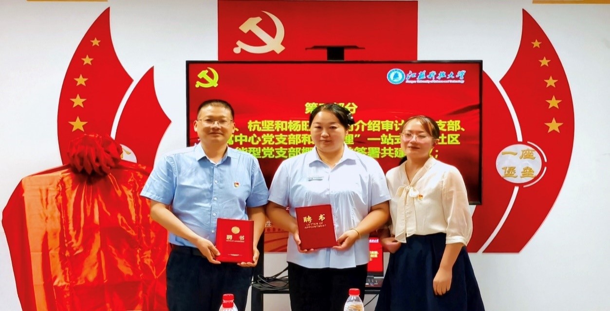 随后,季红艳、杭坚、“明理”一站式学生社区功能型党支部代表、理学院团委书记杨旺林分别介绍了党支部的基本情况、工作特色及共建目标、共建内容与条件保障等。在与会师生代表的共同见证下,三方党支部书记郑重签署了共建协议。