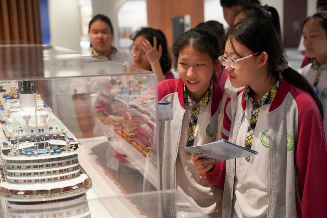 在讲解员的引导下,镇江三中的师生们通过珍贵文字、图片、实物与影像资料,系统了解米兰网页版页面登录的办学历史。校史馆内的“船舶特色展厅”“蚕桑特色展厅”生动诠释了一代代江米兰网页版页面登录人艰苦奋斗的历程。