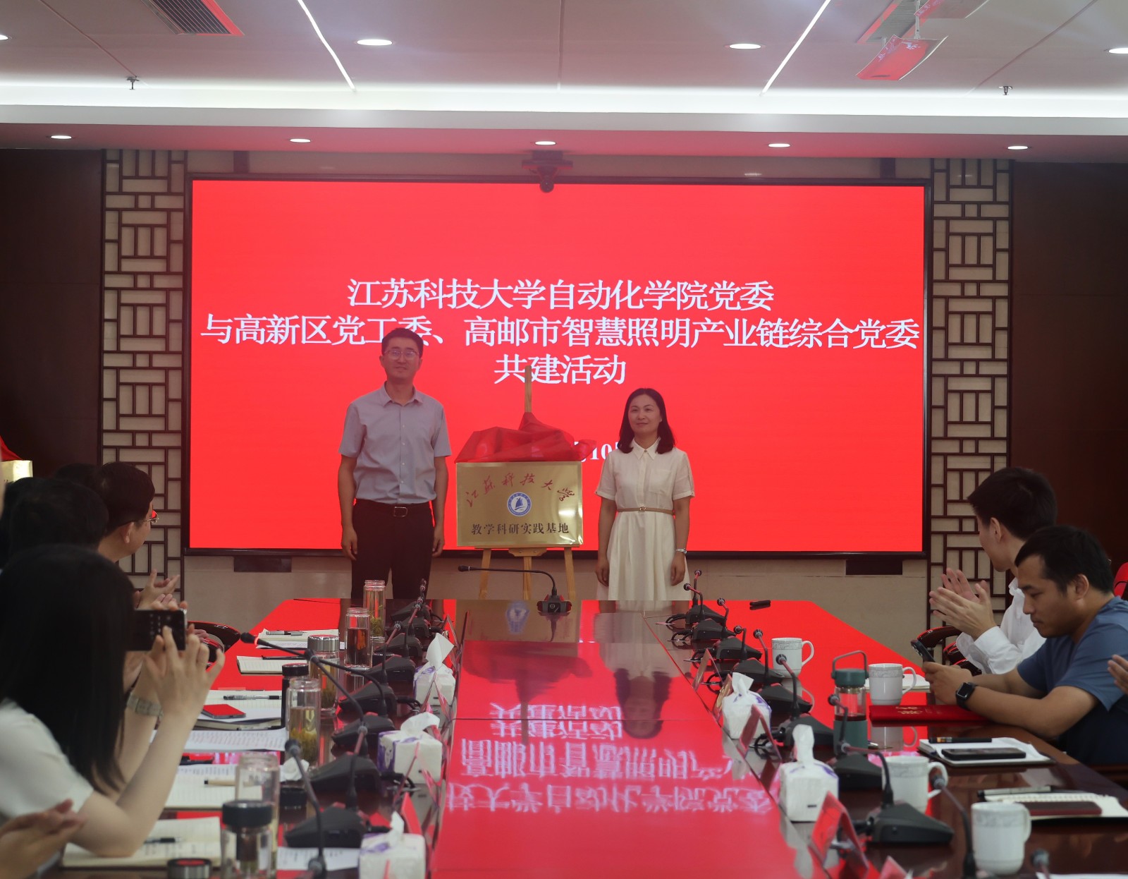 活动中,自动化学院副院长齐亮,高邮市商务局副局长王杨,送桥镇党委副书记、政协工委主任、党建办主任吴正军代表产业链党组织签订了联建共建协议。