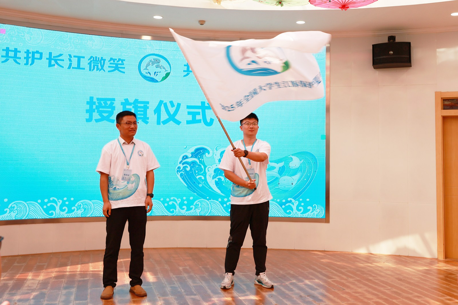 随后,江苏镇江长江豚类省级自然保护区主任王召根为本届夏令营授旗;王新刚为米兰网页版页面登录、华中农业大学、江苏大学京江学院、武汉职业技术大学长江江豚保护暑期社会实践团授旗;校团委副书记张冬冬为青年观察团授旗。指导单位和主承办单位领导共同为营员佩戴营徽。华中农业大学蓝色精灵江豚保护志愿者团队第十五任队长王静怡同学代表营员发言。