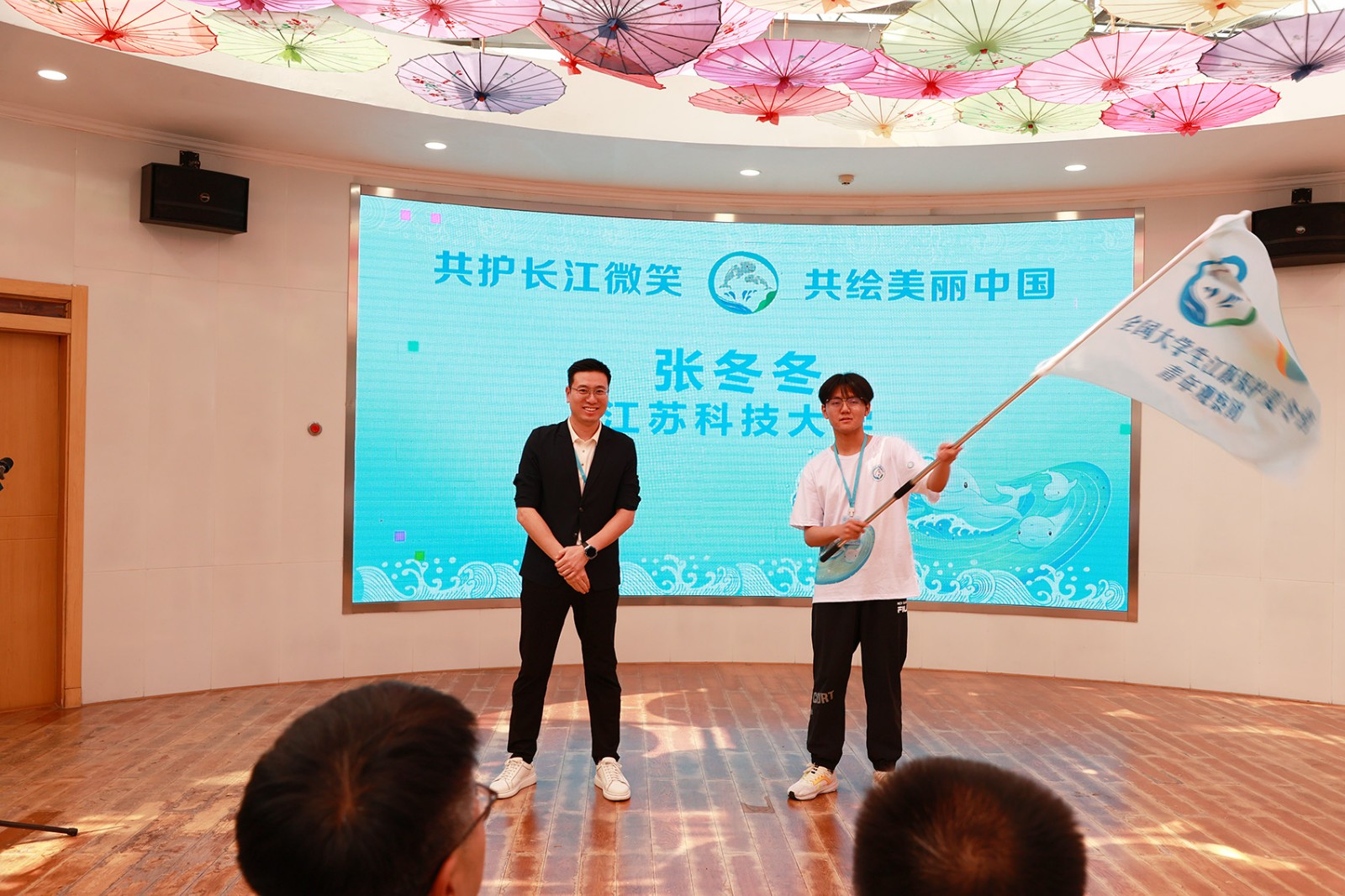 7月15日上午,2025年全国大学生江豚保护夏令营在镇江世业洲开营。来自全国十余所学校的大学生和高中生江豚保护志愿者,以及夏令营指导单位、主承办单位的相关负责人齐聚一堂,共同开启江豚保护的新征程。校团委书记张海洋、副书记张冬冬,环境与化学工程学院党委书记王新刚出席开幕式。