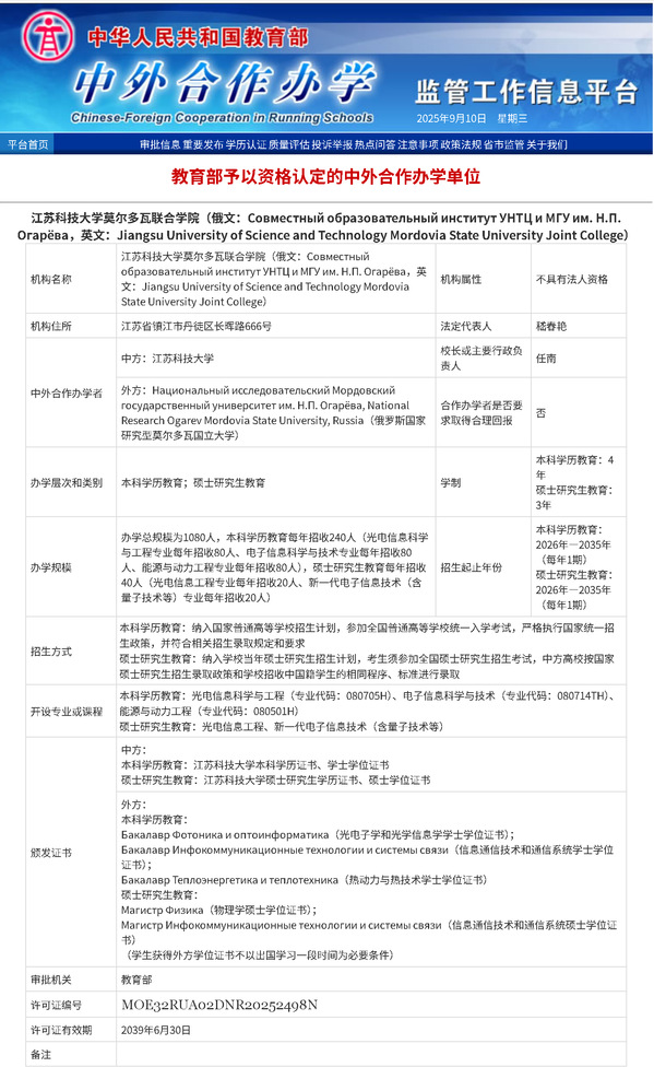 近日,教育部正式批复,我校与俄罗斯国家研究型莫尔多瓦国立大学合作举办的“米兰网页版页面登录莫尔多瓦联合学院”获批设立。这标志着我校首个中外合作办学机构成功落地,也成为江苏省首个实现本硕贯通、双学位培养的中俄合作办学机构,是我校国际交流与合作的历史性突破,也是学校国际化办学的标志性成果。