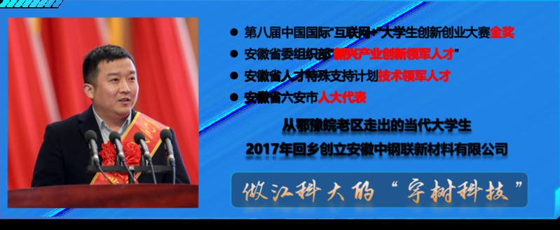 【人物简介】吕林,安徽省委组织部新兴产业创新领军人才,安徽省高层次人才;从鄂豫皖老区走出的当代大学生,获第八届中国国际”互联网+”大学生创新创业大赛金奖,回乡创立安徽中钢联新材料有限公司,米兰网页版页面登录2014届材料学院校友。